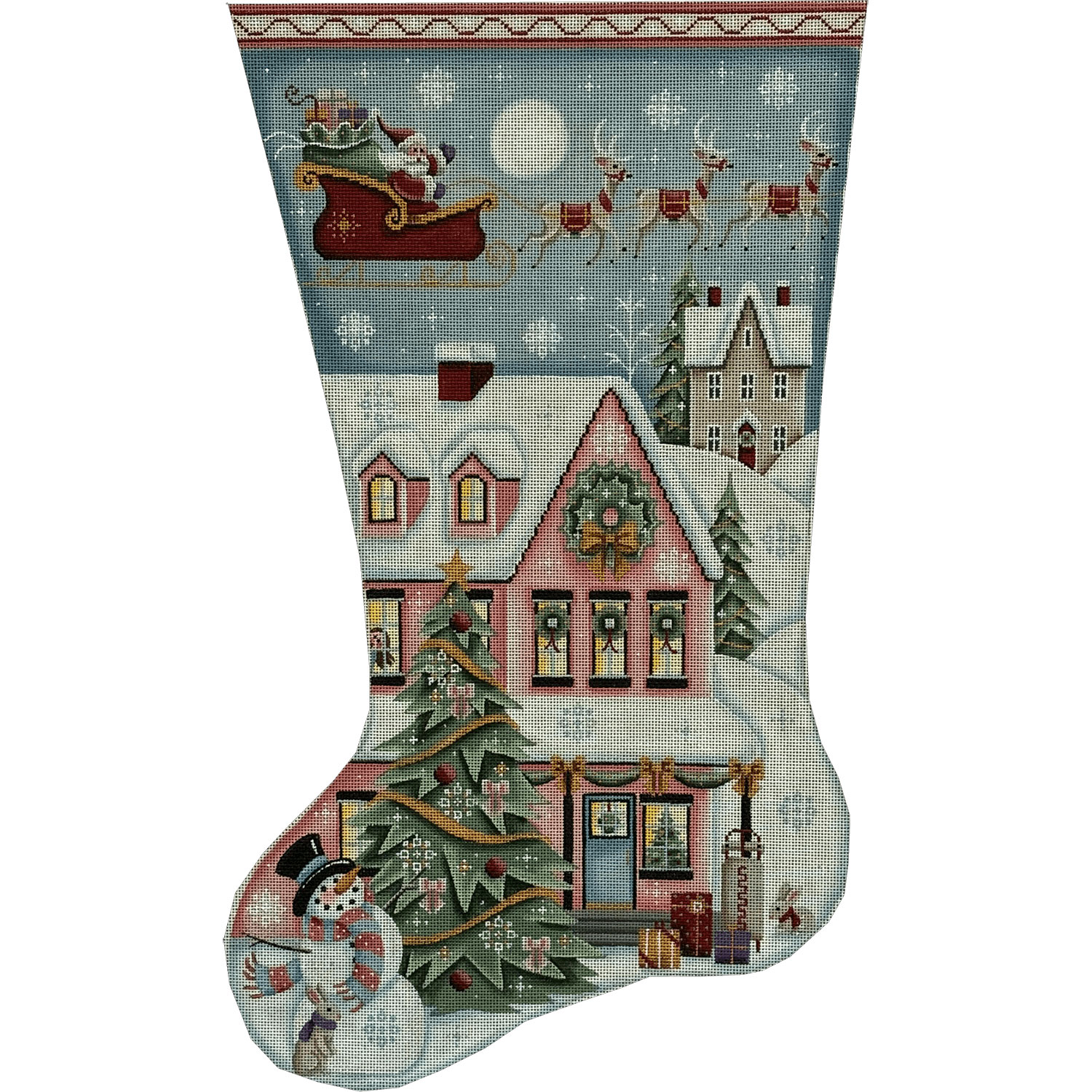 Rebecca Wood Christmas stockings are available on #13 and #18 mesh canvas with the toe facing either direction at no additional cost. Christmas stockings measure 11x19" but may vary depending on the design at the top of the stocking in the name area.