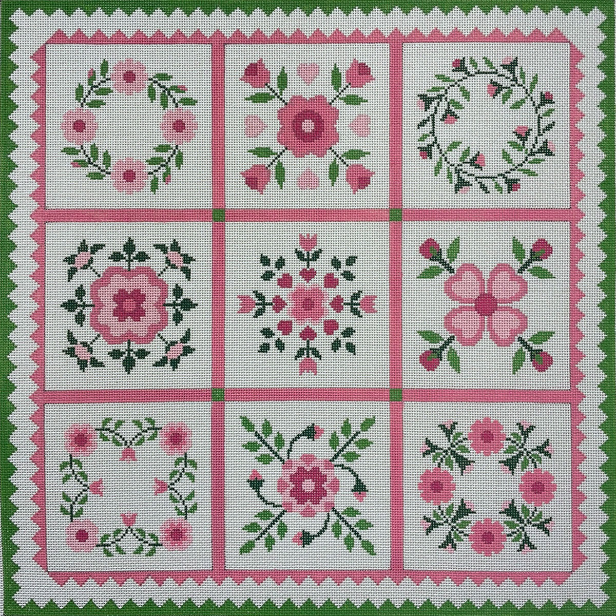 Susan Roberts Needlepoint Designs - Hand-painted Canvas - Rose Quilt Sampler