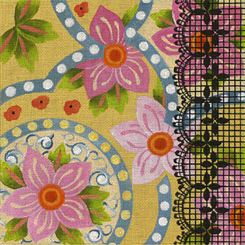 10x10" design beautifully hand-painted on #18 canvas. The "wow" factor on these canvases is obvious as soon as you see them!