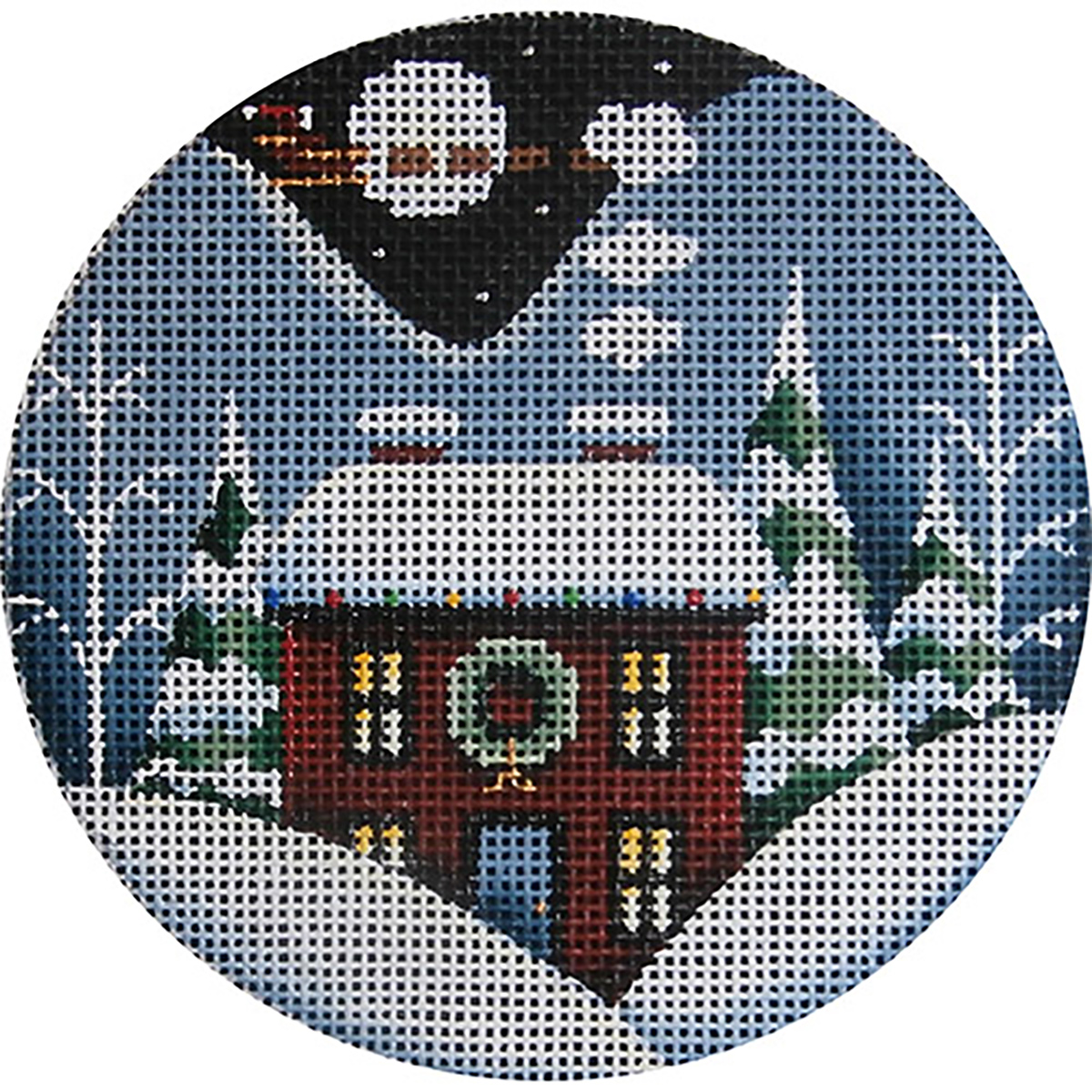Wreath Winter Cabin Hand Painted Christmas Ornament Canvas from Rebecca Wood