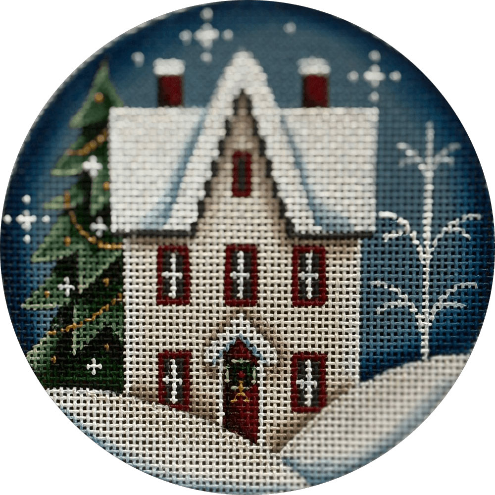 Snow Cottage Hand Painted Christmas Ornament Canvas from Rebecca Wood
